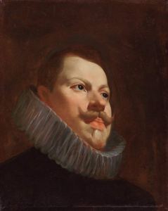 The Portrait of Philip III is a previously unpublished work with stylistic features and technical characteristics that allow it to be attributed to Velázquez and to be associated with The Expulsion of the Moriscos, a work painted in 1627 in competition with Vicente Carducho, Eugenio Cajés and Angelo Nardi. It was lost in the Royal Alcázar (Madrid) fire of 1734, but descriptions of it survive confirming that the principal figure depicted in it was Philip III, shown standing next to an allegory of Spain and pointing towards the Moriscos as they were being expelled. Velázquez never met Philip III, who died in 1621, and he based his work on portraits of the monarch by other artists. This canvas is a preliminary study that he used to establish an image of the King, thus explaining its sketchy nature as a working tool rather than an independent, finished work.