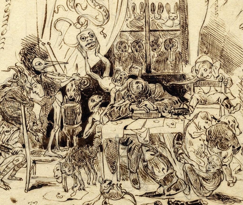 Goya’s impact on 19th-century French art was immense and multifaceted. In Spain, he was known for the royal portraits, while in France he became celebrated for the Caprichos, which were obsessively studied by artists like Eugène Delacroix. French Romantics saw them as a satire of late 18th-century Spain, ignoring Goya’s universalism; his work holds a mirror up to humanity, and even his monsters and witches are nothing but the deformed reflection of humans. In a sort of two-way influence, Goya contributed to shaping French Romantic art–hence the beginning of modern art–while the Romantics modelled his critical image. The established interpretation of Goya is therefore partly based on Romantic stereotypes, many of which have been perpetuated to this day.