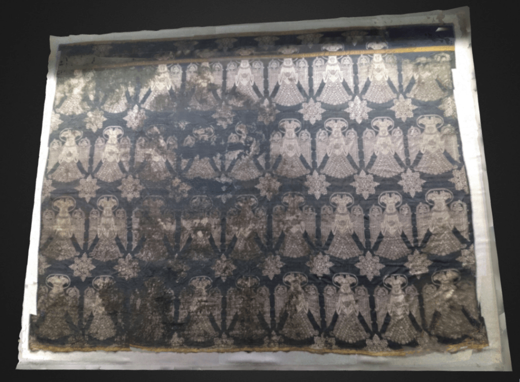 Located between the kingdoms of Castile and León, the Monastery of San Zoilo was a powerful religious center during the 11th and 12th centuries. The blue silk textile from the Monastery of San Zoilo in Palencia, dating from the 11th century, is unique in its impeccable state of preservation and its immense size (2.75 x 2.08m). The fabric with blue background was regarded as a special color in Al-Andalus.