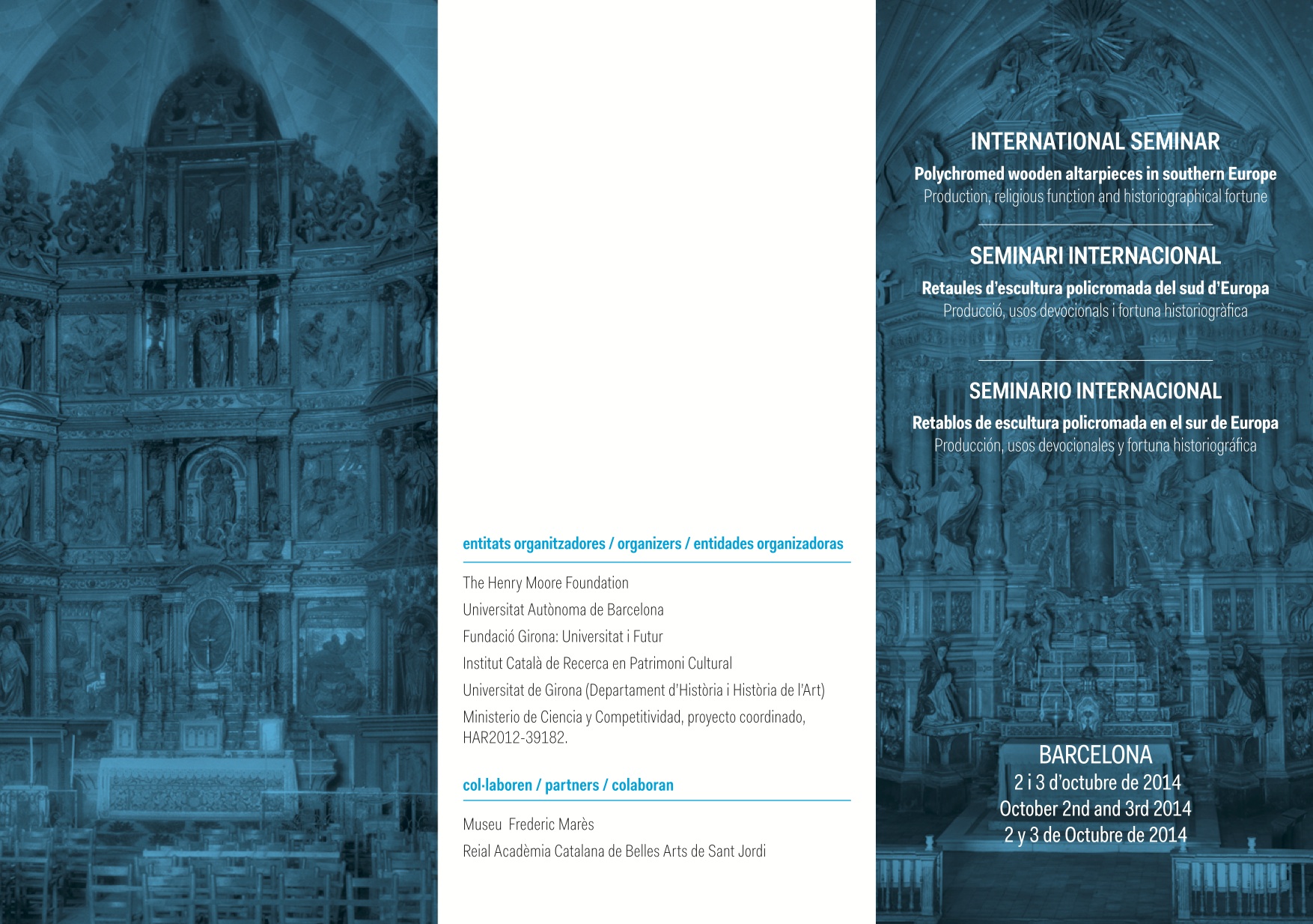 International Seminar on Polychromed Wooden Altarpieces in Southern Europe 2 & 3 October 2014/ Seminario internacional – retablos de escultura policromada en el sur de europa – 2 & 3 octubre de 2014